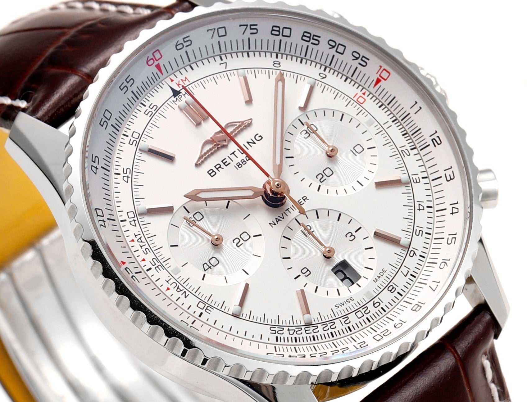 Breitling Navitimer 43mm, White Dial, Brown Leather Strap – Inquire Price via WhatsApp