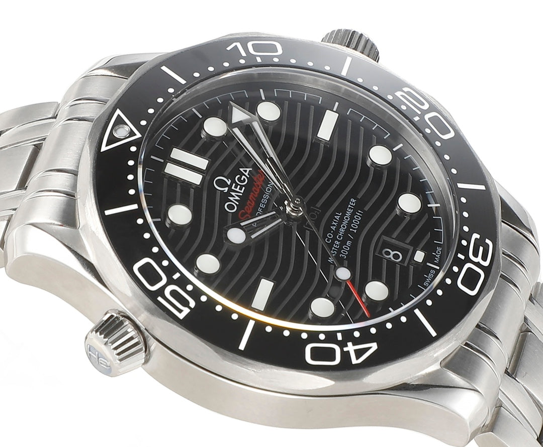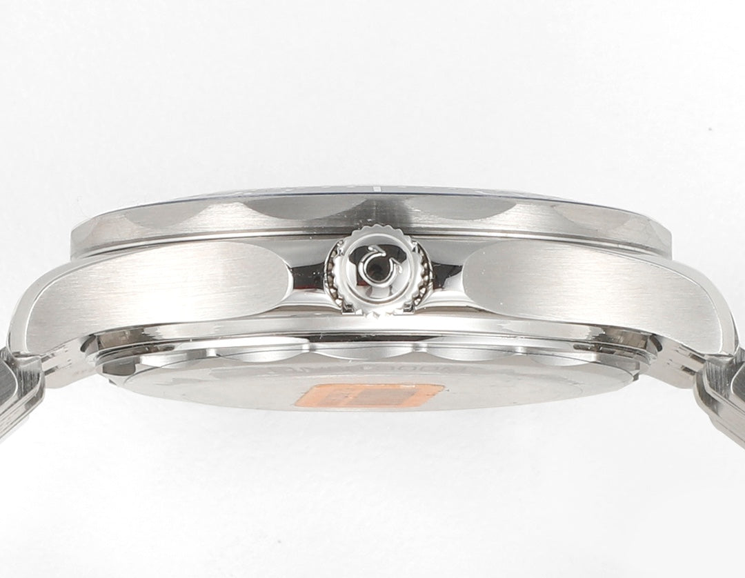 The Omega Seamaster Diver 300M 42mm blends classic design with professional performance. Crafted as a 1:1 mirror copy, it features a brushed stainless steel case with polished accents and a black ceramic bezel enhanced with white enamel diving scales—resistant to fading and wear. The ratcheted unidirectional bezel and domed sapphire crystal with anti-reflective coating showcase both durability and refined craftsmanship.