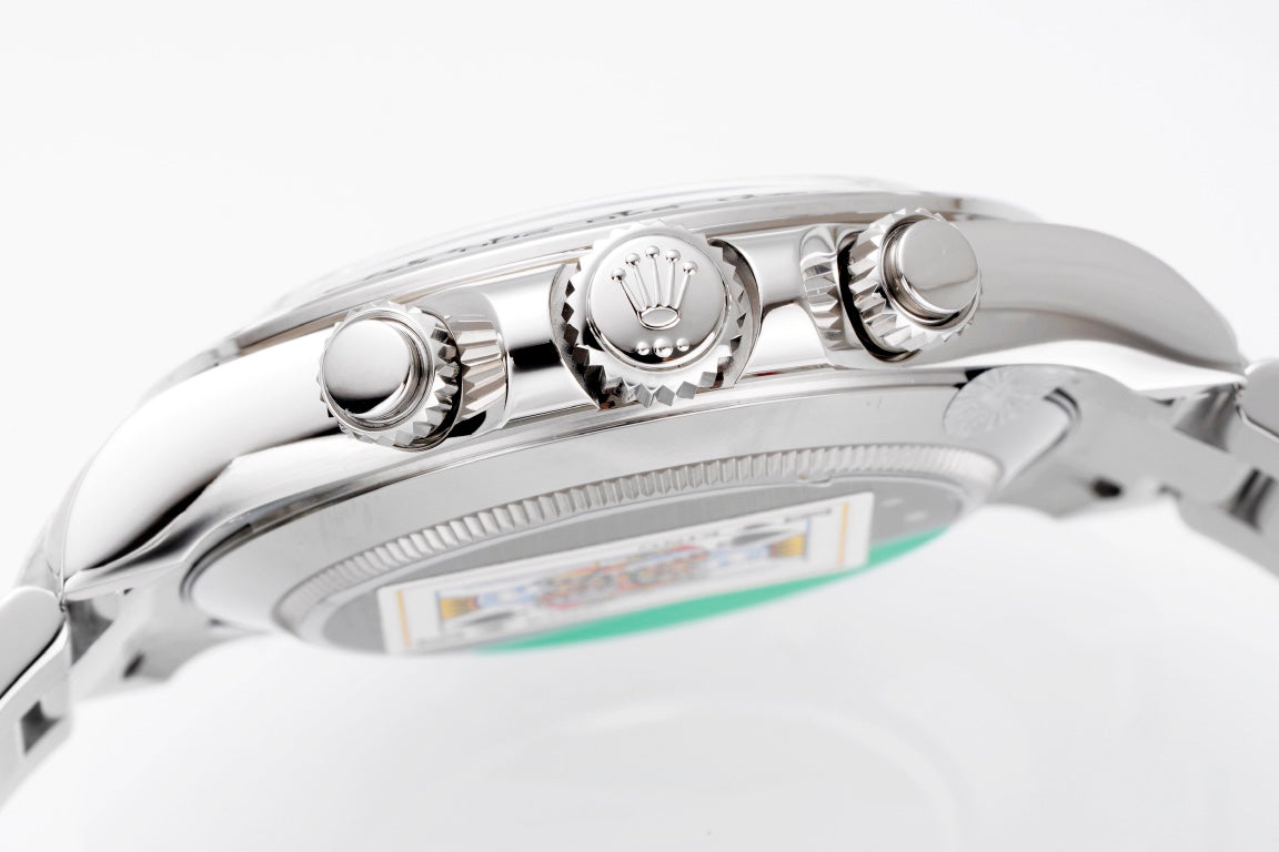 Experience the pinnacle of craftsmanship with the Rolex Daytona 4130. This masterpiece represents the highest level of precision and elegance, designed as a true 1:1 mirror copy of the original. The 40mm case with a 12.2mm profile features a flawlessly polished finish that radiates luxury and perfection.